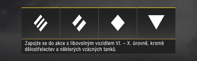 Nebudou žádné vstupní požadavky, což vám všem dává šanci, abyste se dostali až na vrchol a udrželi se tam. Nebudou ani žádná složitá omezení. Je to jednoduché: prostě začněte hrát. Můžete soutěžit v podstatě s jakýmkoliv vozidlem VI. či vyšší úrovně, a to pouze s dvěma výjimkami — dělostřelectvo a některé vzácné tanky (podívejte se na stránku akce, kde najdete úplný seznam). Pokud jde o formát bitev, tak se bude jednat pouze o náhodné bitvy. A pokud máte několik věrných společníků, můžete s nimi spojit své síly v četě a bojovat bok po boku.