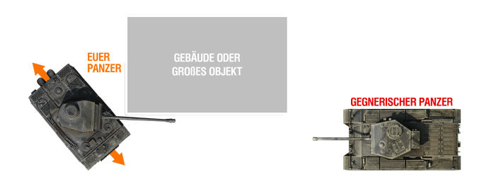 Es gibt zwei Arten, dieses Manöver auszuführen: Entweder benutzt ihr den Neigungswinkel eures Geschützes oder das Gelände als Deckung.