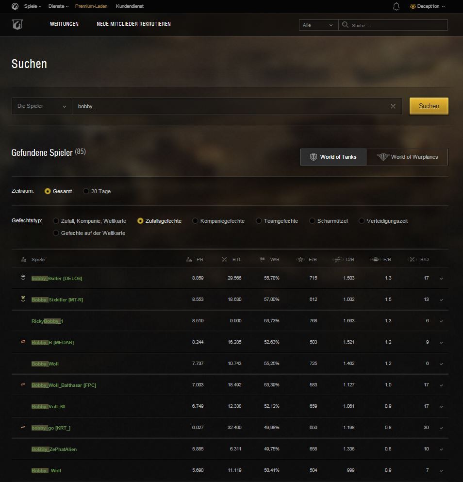 - Spielersuche