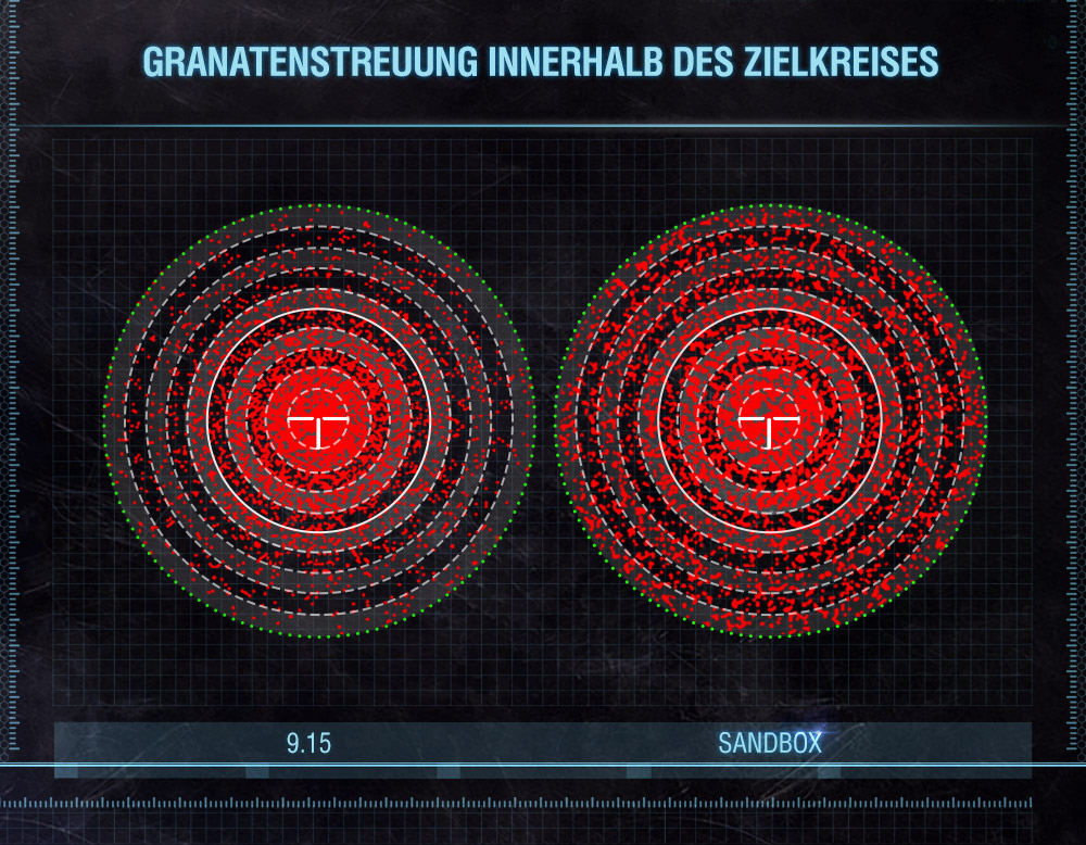 Das Ziel besteht darin, die effektive Feuerreichweite zu verringern, um die Überlebensfähigkeit eines Fahrzeugs zu steigern, wenn dieses auf große Entfernung anvisiert wird. Spieler müssen nun genauer zielen. Die Verteilung zwischen der Version 9.15 und der Sandbox ist wie folgt:
