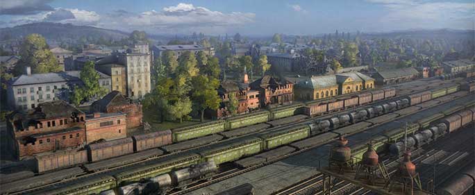 Ensk, a suburban town from Russian classical literature, inhabited by fictitious heroes such as Sanya Grigoryev and Ostap Bender, first appeared in World of Tanks in April 2010. The industrial area neighbours the suburban area and a large railway junction. The railway station forecourt features many small peculiarities of the epoch: a loudspeaker, a bicycle placed against a post clock and an old propaganda poster, hanging on a bulletin board. If you're familiar with the works of authors such as Gogol or Dostoevsky, the next time you drive through the cozy streets of Ensk, take a closer look at the houses that your enemies use as cover and maybe you will recognise some places from their stories.