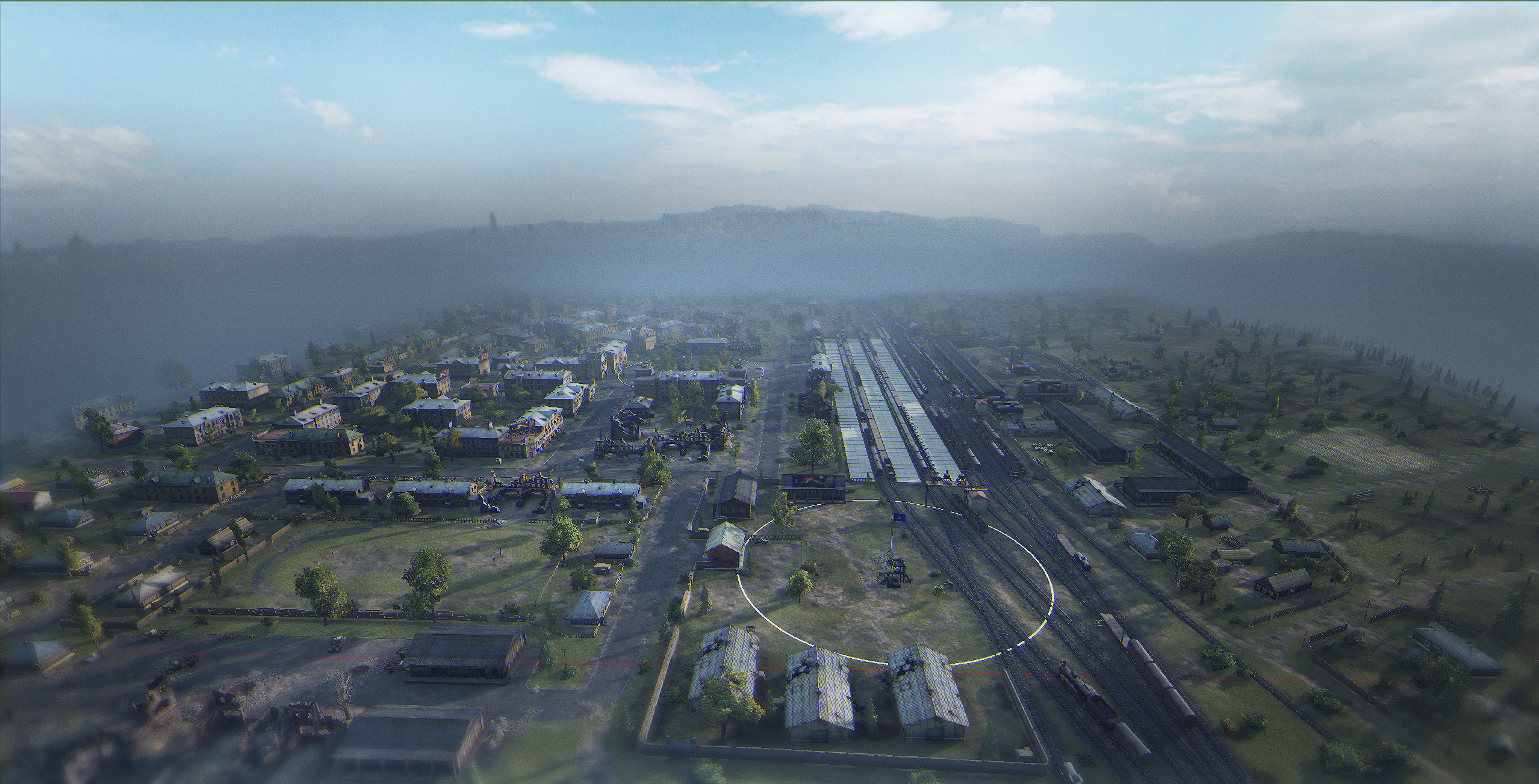 The level Artists tried to avoid direct associations with real places on the world map. At the same time, Ensk was supposed to feature many inconspicuous details, which gave players the impression that they are in a small Soviet town. Therefore, many elements appeared on the map: a cozy quarters with low houses, suburban wooden huts, the railway station forecourt, and many nostalgic symbols, as well as smaller details such as old linen hanging on ropes, iron slides, creaky swings, news stalls, pigeon houses, and even booths of traffic policemen all adding to the ambience.