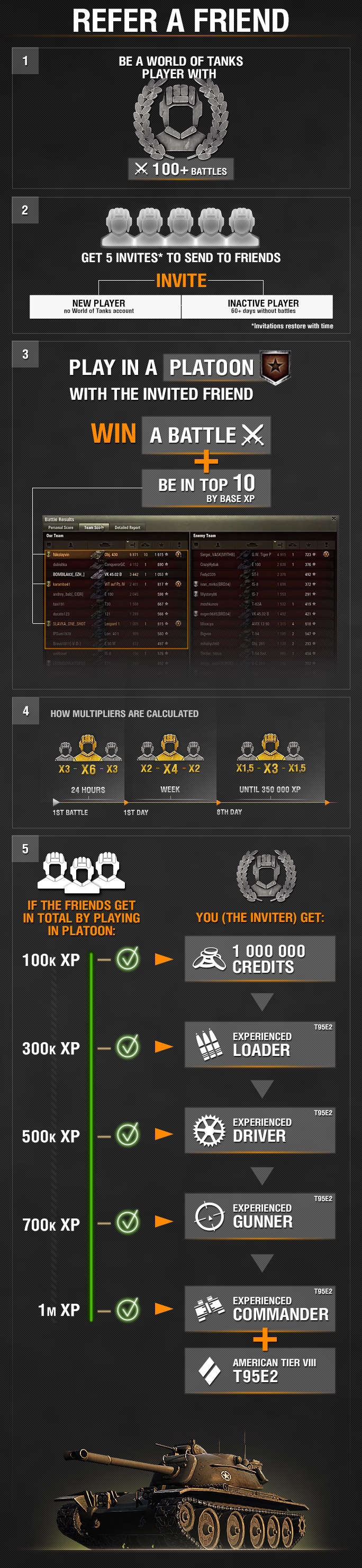 1. If you complete 100 battles in 60 days, you are granted Recruiter status. This status is now permanent for the account that you are playing on.