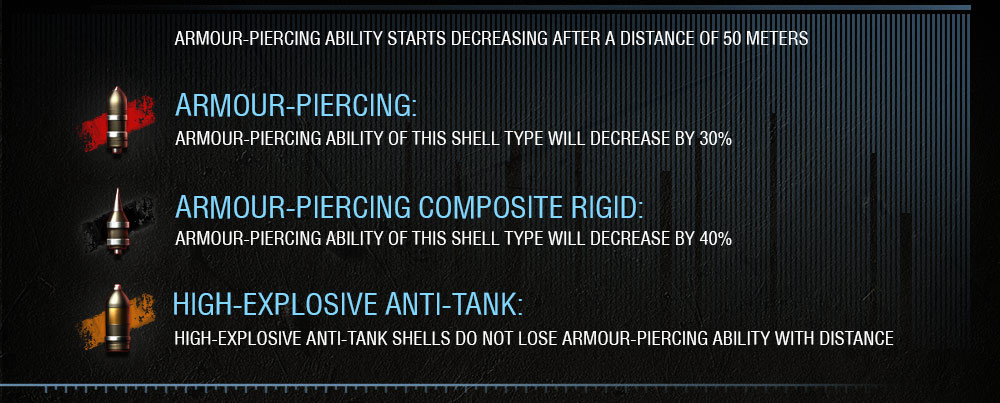 According to this feature, the chance of penetrating a vehicle frontally is decreased at far distances. Thus, heavy-armoured vehicles will be able to battle through the flanks.