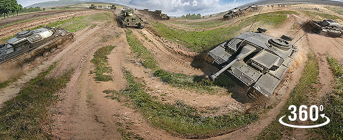 The events displayed in the video refer to the WWII battlefield realties in the USSR, from summer 1941. The re-enactment was shot between 28 and 29 August 2015, in Belarus, using technology that allowed for filming in 360⁰ - Wargaming and Google are the first to have ever used this technique to film a tank battle re-enactment. For the purpose of this video, CGI effects were also used to add planes to the scenes.
