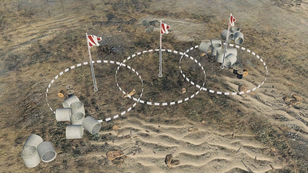 Four platoons take part in the battle. Battles are fought in an “Everyone vs. Everyone” format. The first platoon to score 100 Victory Points, or the platoon with the most points when time runs out, wins. Victory Points are earned for delivering flags, destroying enemies, and dealing damage and are distributed as follows: