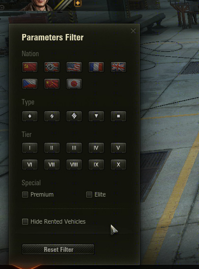 One of the new features in 9.15 will be additional garage filters in the “tank carousel”. It will be possible to display the vehicles in the most convenient way for each player. Updated filters will include not only types, tiers and nations of the vehicle, but it’ll also be possible to mark vehicles with the First Victory of the Day bonus. Less time spent searching vehicles = more time battling. Roll out! Click the image to the right to enlarge |