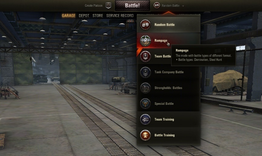 In random battles, special battle missions will be available. To complete these missions, it will be possible to rent three vehicles, which can only be used in the Rampage event: