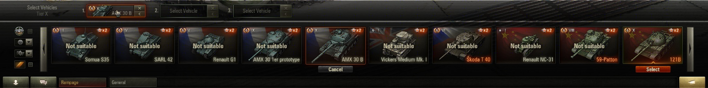 In order to take part in a battle, players need to choose from one to three owned tanks from Tiers VIII, IX or X. Moreover, among the chosen vehicles, there should be at least one tank from Tier X. To start a battle, prepare your vehicles and click on the “Battle!” button.
