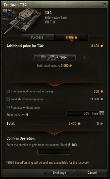 - When trading-in, you don't have to buy an extra garage slot - the new tank will be placed in the slot previously occupied by the vehicle that was traded in