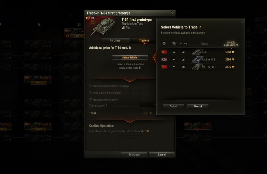 - You can trade-in only vehicles that are of lower or equal Tier to the vehicle you are purchasing, but not lower than Tier VI