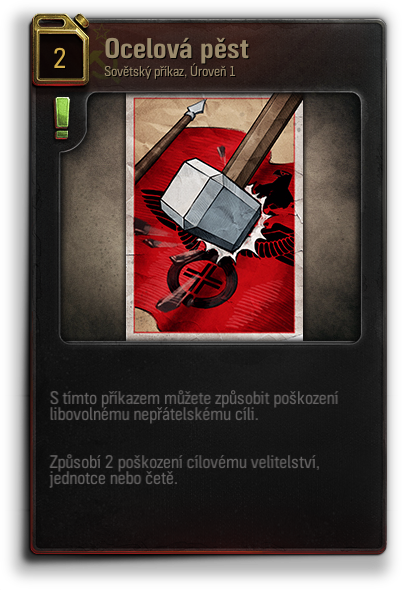 V bitvě jsem měl na výběr mezi Rozdrťte a Ocelovou pěstí. Vybral jsem si Ocelovou pěst, protože má dva náklady na vyložení a ne devět, což je pro mě příliš drahé. Obě dvě tyto příkazové karty jsou primitivní, ale efektivní. Mohou buď poškodit karty, které jsou ve hře, nebo nepřátelskou základnu. Karta Rozdrťte je velmi silná, zvlášť pokud potřebujete aby byl váš úder cítit. Na její vyložení je však potřeba hodně zdrojů, takže nejdřív musím mít hodně karet dodávajících zdroje.