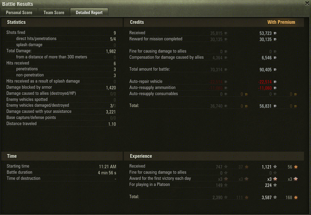 Un pelotón recibirá penalizaciones de experiencia al final de la batalla si la diferencia entre el nivel máximo y mínimo de sus vehículos es superior a tres. La reducción de experiencia dependerá de la diferencia concreta de niveles entre los vehículos del pelotón.