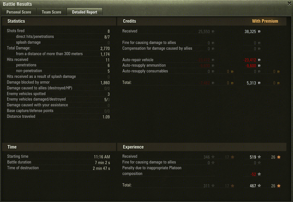 Si un vehículo se incorpora a un pelotón con vehículos de niveles dispares durante una batalla, se aplicará una penalización tras la primera batalla únicamente a los jugadores que hayan formado el pelotón de niveles dispares en el hangar.