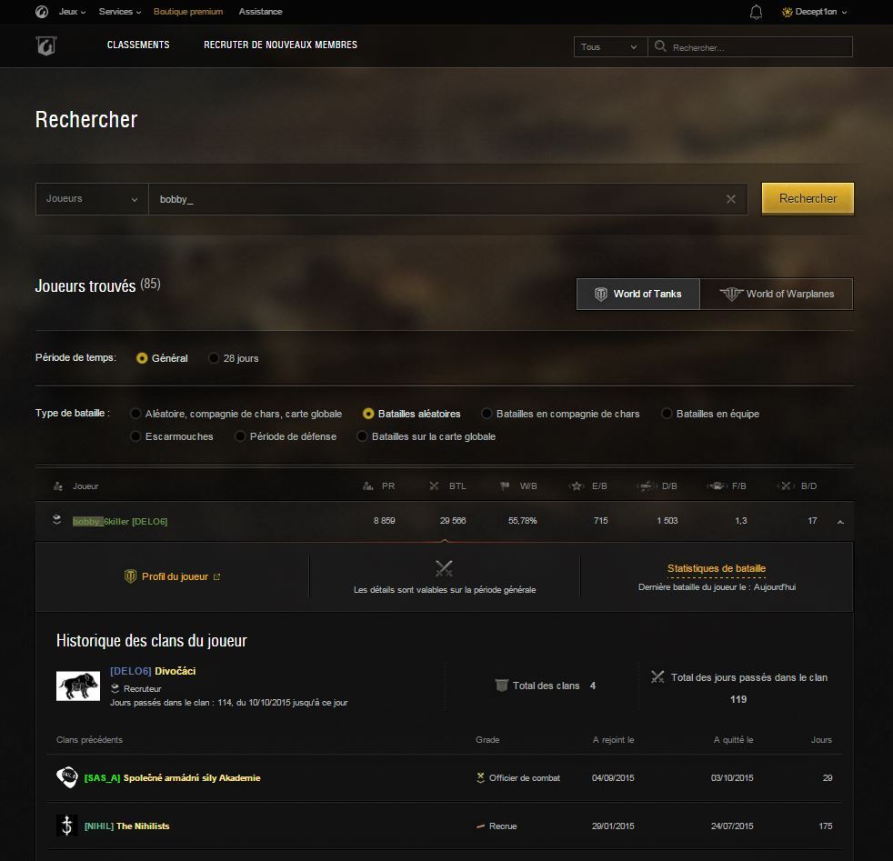 Une nouvelle fonctionnalité est disponible avec la dernière mise à jour du portail des clans : vous pouvez maintenant chercher des joueurs, aidant ainsi à recruter de nouveaux membres pour construire le clan. Pour trouver un joueur, saisissez simplement au moins trois caractères de son nom d’utilisateur. Dans les résultats de recherche, vous verrez les joueurs qui correspondent et leurs statistiques principales. Tous les joueurs actifs, y compris ceux postulant pour d’autres clans, sont inclus dans la recherche.
