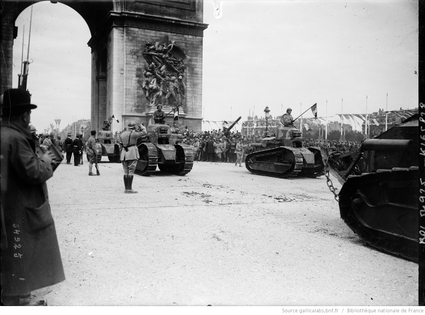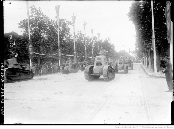 | Chars Renault FR défilant sur les Champs-Élysées le 14 juillet 1919 | ||