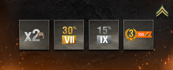 Ce week-end, une nouvelle opportunité de gagner une promotion se présente à vous ! Accumulez suffisamment d'expérience de terrain pour devenir caporal, profitez d'une nouvelle distribution de pièces d'or en récompense et récupérez un nouveau jeton de mission. Souvenez-vous : si vous collectez les quatre jetons requis, vous obtiendrez un accès exclusif à des missions spéciales réservées aux véhicules allemands en octobre ! Par ailleurs, notez que si vous ratez un jeton, il existe dans la Boutique premium une option infaillible qui vous sauvera la mise.