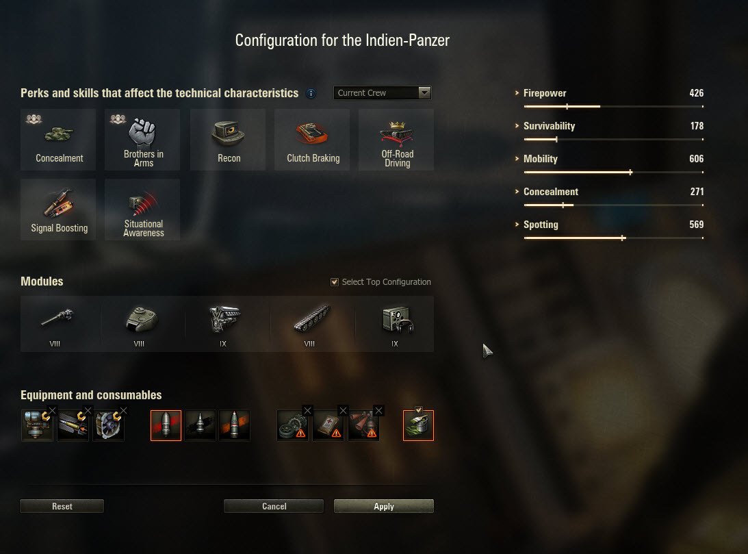 If you aren’t that into it, just flag “Select Top Configuration,” and we’ll get it done for you. It’s even easier with Premium, reward, and the majority of Tier X vehicles: the top configuration is the only one for them.