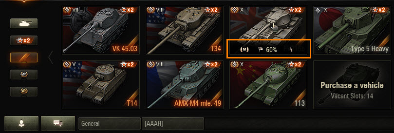 To save you some time when checking additional stats, we implemented a few new information blocks for vehicle slots: Mastery badges, win ratio, and Marks of Excellence. Just hover over the vehicle slot to view them.