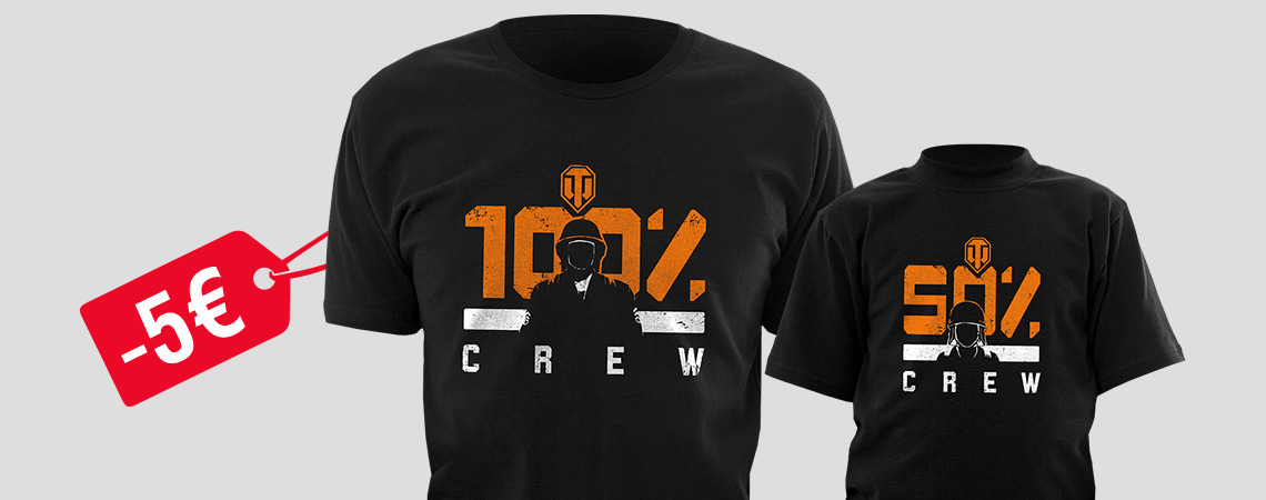 Ecco una nuova offerta nel negozio di Wargaming che punta a unire padri e figli come comandanti d’arme e a colmare il gap generazionale con delle T-shirt coordinate! Per un periodo limitato potrai ottenere uno sconto di €5 sulla T-shirt “100% Crew” quando compri la T-shirt “50% Crew”.