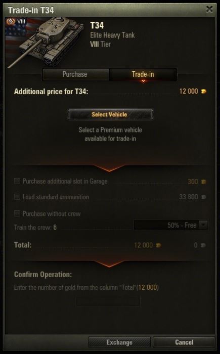 Proprio come vendere veicoli standard ti dà la metà del loro valore in crediti, permutare il tuo vecchio carro armato Premium ti offre metà del suo valore in oro, che verrà scontato dal prezzo del veicolo che vuoi comprare.