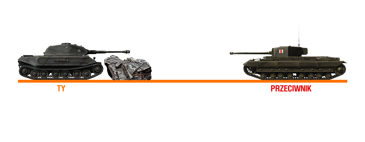 W tej wersji manewru próbujecie wykorzystać w roli osłony przeszkody terenowe, na przykład: hałdy gruzu, wraki czołgów, skały czy małe pagórki. Każdy czołg może skutecznie wykonać ten manewr, jeśli tylko uda Wam się znaleźć przeszkodę odpowiednio dużą, by zasłoniła chociaż Waszą dolną płytę.