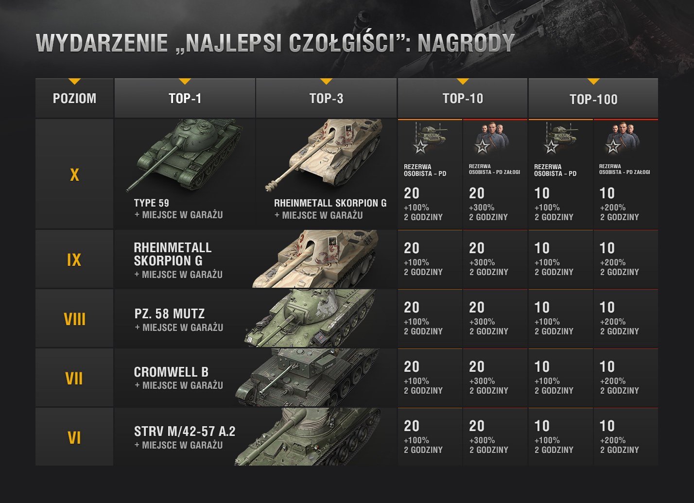 Nadszedł czas odbierania trofeów, które zdobyliście w boju. Rzadkie pojazdy, rezerwy osobiste oraz wyjątkowe medale zostaną przekazane na konta między 2 a 7 grudnia.