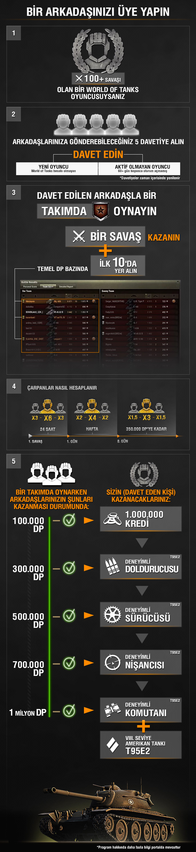 - 60 günde 100 savaş tamamlarsanız, size "Üye Kazandıran" statüsü verilecek. Bu statü artık oynadığınız hesap için kalıcı hale getirildi.
