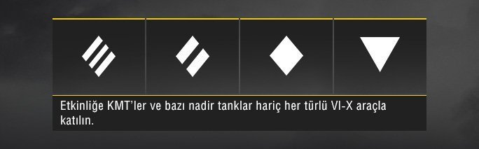 Giriş gereksinimi olmadığından hepinizin zirveye ulaşma ve orada kalma şansı var. Karmaşık düzenlemeler de yok. Her şey basit: çıkın ve oynamaya başlayın. İki istisna dışında istediğiniz herhangi Seviye VI veya daha yüksek bir araçla yarışabilirsiniz – topçular ve bazı nadir tanklar (tam liste için etkinlik sayfasına bakın). Şekle gelince, Rastgele Savaşlardan başka bir şey değil. Eğer birkaç vazgeçemeyeceğiniz arkadaşınız varsa, beraber savaşmak için bir Takımda güçlerinizi birleştirebilirsiniz.