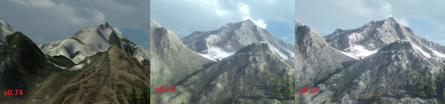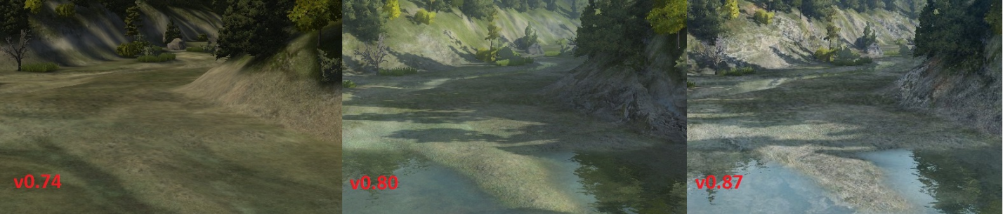 This change included visual features such as dynamic shadows, improved lighting and more natural-looking water. Check out the screenshots below to see how the graphics changed with each update.