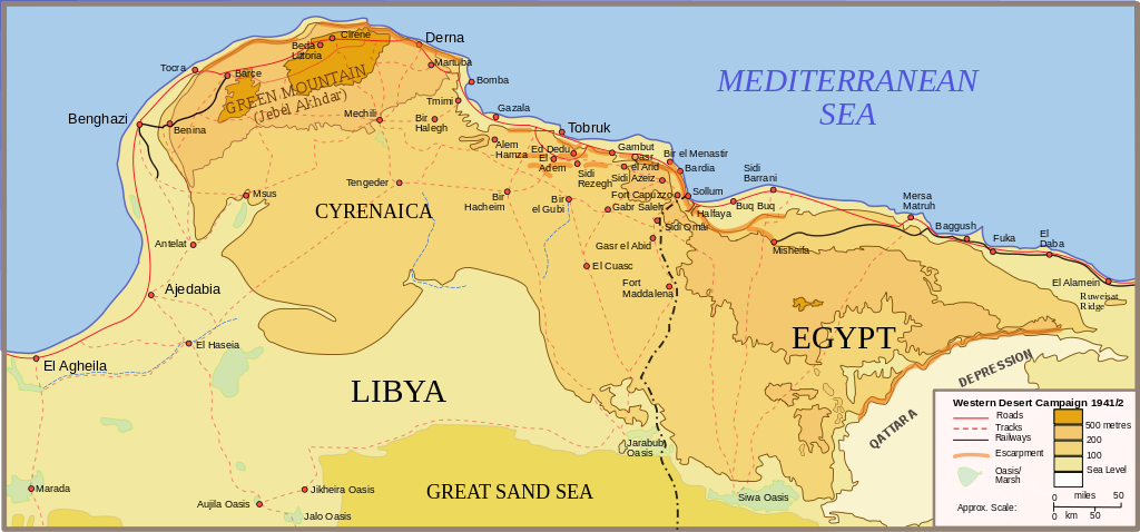 Tobruk is a port city on the Libyan coast near the border to Egypt. During World War II it was a strategically important location that the Allied forces could not afford to lose. The city’s port was vital for the Allies’ defence of Egypt and held great tactical value: While in the hands of the Allies, it forced the Germans to resupply their troops overland rather than by sea, which meant that the Axis forces had to take the long way through 1500km of desert, greatly slowing down the progress of their campaign in Africa.